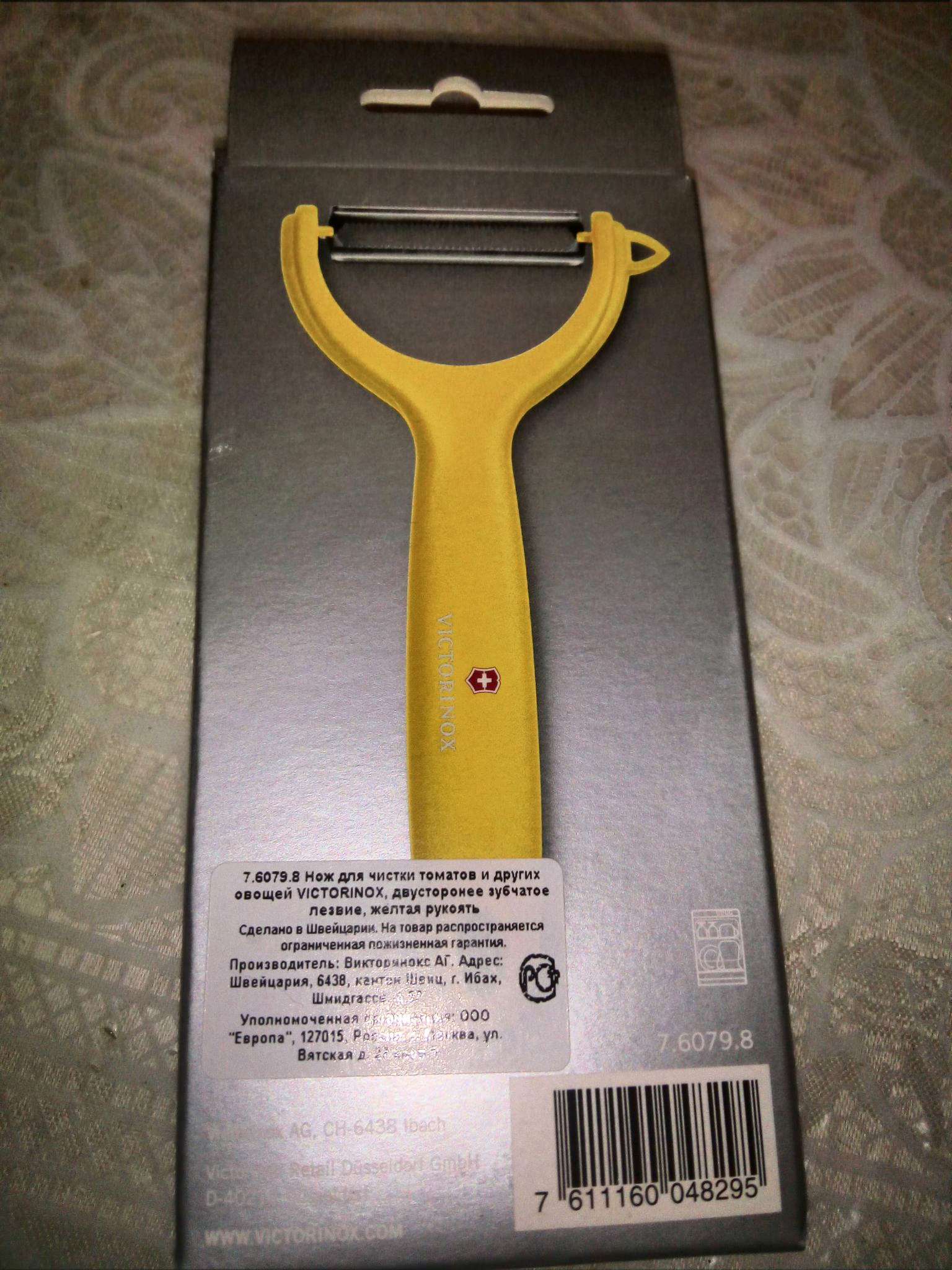 Отличное качество. Нож для чистки овощей. Огромное преимущество, что снимает кожицу тонким слоем, им невозможного порезаться. Доставили быстро.