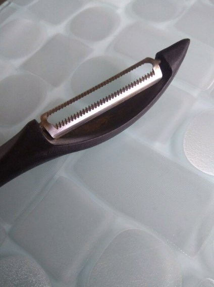 Очистка происходит очень легко, очищенный картофель (или любой другой фрукт или овощ) покрыт маленькими бороздками. Классный нож, который покорил мое сердце, теперь чистка картофеля приносит огромное удовольствие.