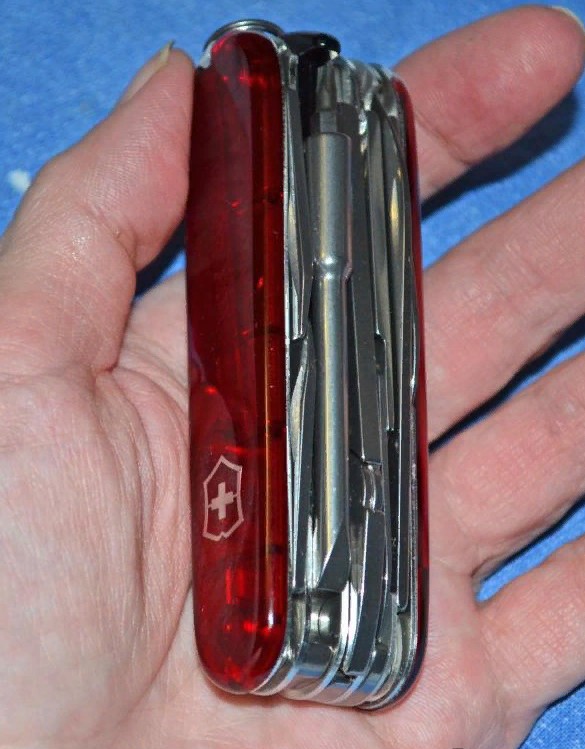 - С лезвием; Со штопором; С консервным ножом; С малой отверткой; С открывалкой для бутылок; С отверткой; С инструментом для снятия изоляции; С шилом; С кольцом для ключей; С пинцетом; С зубочисткой; С ключом; С гнездом под шестигранники; С битами; С булавкой; С ручкой; С плоскогубцами; С кусачками; С инструментом для обжима проводов; С ножницами; С крючком